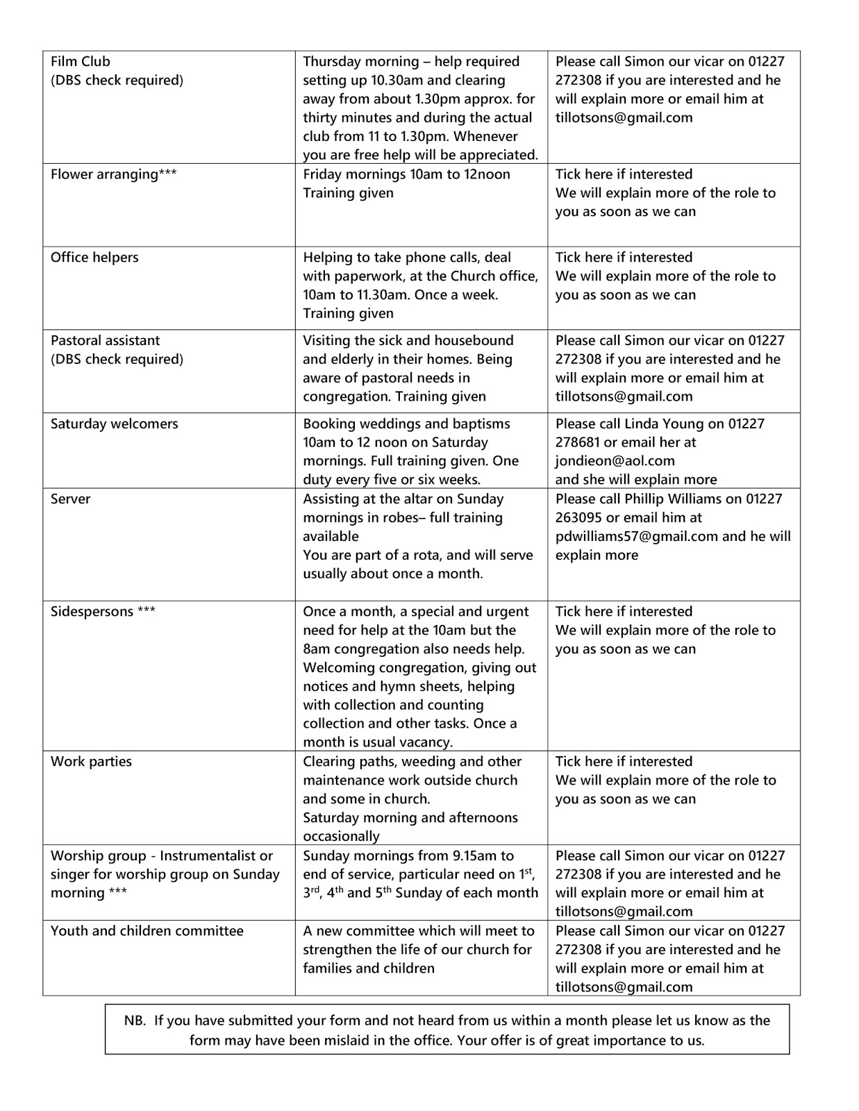 The team is looking for volunteers – it’s a good hobby and a way of serving the church and the many wedding couples who come to our church for their marriage. If you are not experienced then training will be given.